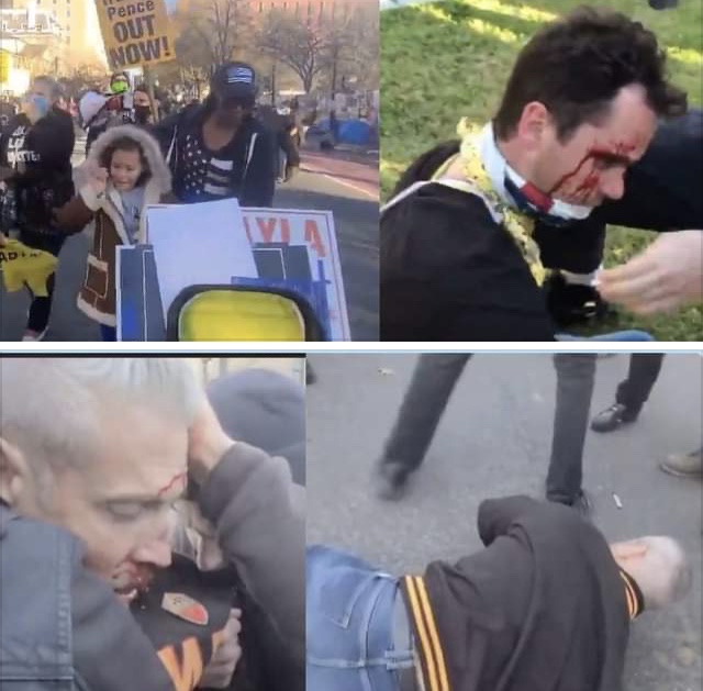 そこへANTIFAが現れ、共和党支持者に襲い掛かり、暴行を振舞う。共和党支持者は我慢して、反撃もしない。